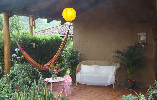 Personal Terraces with hammocks invite you to enjoy the Relaxed pace of life inVilcabamaba surrounded by lush Beautiful gardens with the magnificent shade of a Grande 25 year old Bonsai StyleAvocado tree. She produces 200 or more large fruits every year.